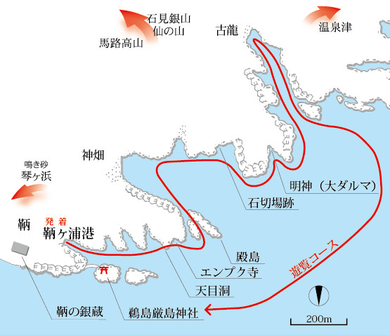 鞆ヶ浦…銀山柵内から北西6kmの日本海沿岸にあり、